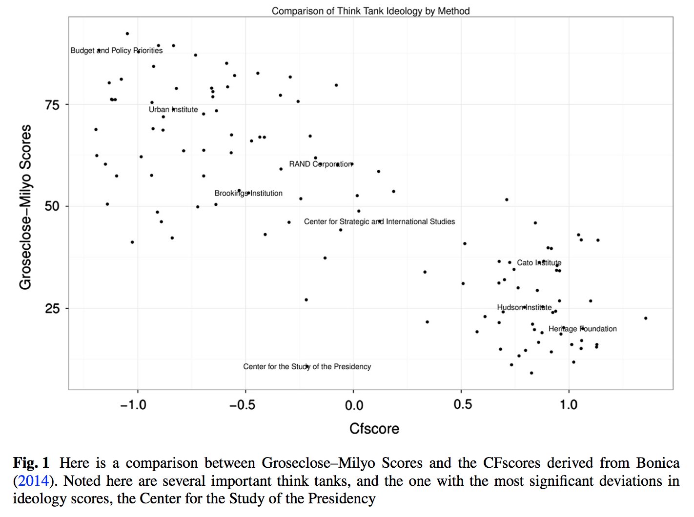 Skirting the lines between academic, promotional and advocacy organizations, think tanks spend an inordinate amount of time and money attempting to influence policy debates, all the while being legally barred from lobbying. Think tanks, unlike interest groups, do not bring with them electoral constituencies to advocate on behalf of, so the ways in which they persuade legislators to adopt their opinions cannot simply be electoral in nature. Using a dataset of think tank citations from congressional floor speeches and committee testimony records, I compare the influence of think tanks based on a new measure of their ideologies and, in doing so, show that think tanks engage in strategic ideological positioning to maximize their influence. An additional hypothesis examined is the relationship between think tank members’ previous work experiences in government with the organizations’ overall prominence. By treating think tanks as strategic actors in legislative politics, I show that think tanks’ ideological positioning affects directly how members of Congress engage with them, both by citing them in floor speeches and in calling them to testify, with more extreme think tanks being cited more frequently in floor speeches and more moderate think tanks called more often to testify.